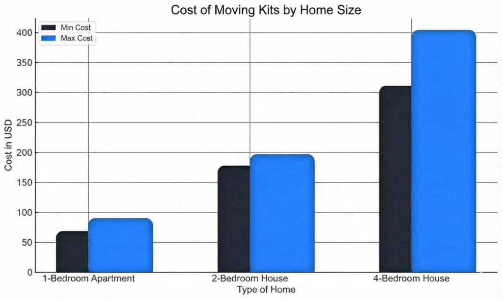 If you’re thinking about buying a complete moving kit, here’s a general idea of what you might pay:
